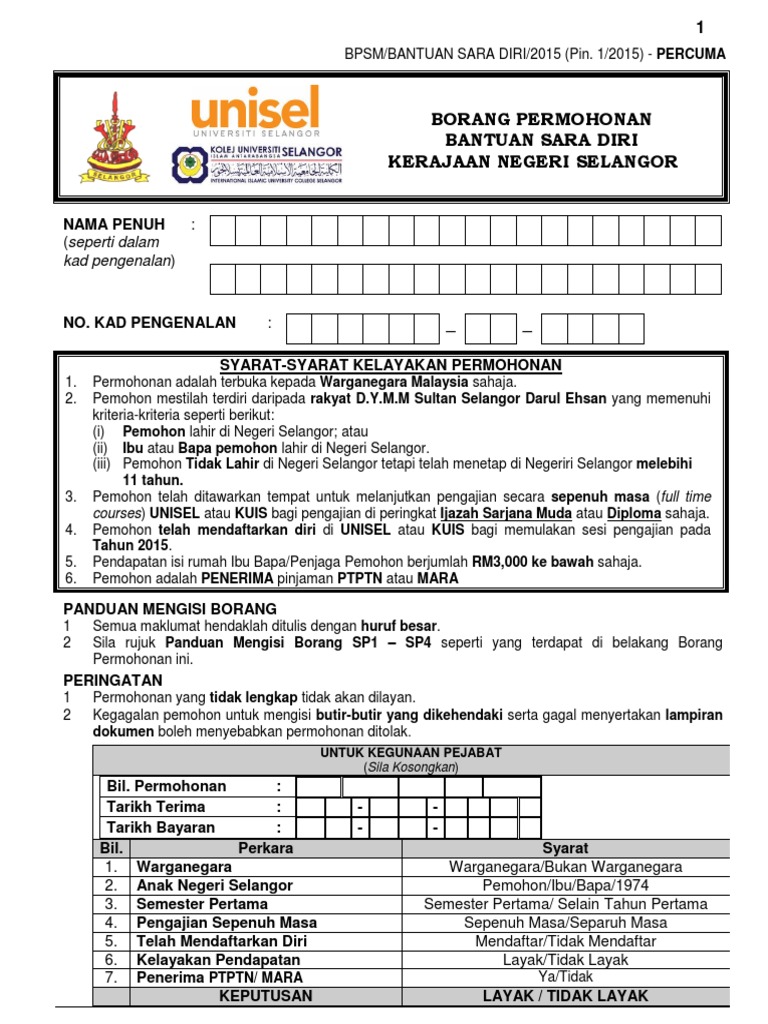 UNIT PERANCANG EKONOMI NEGERI. Bpsmbantuan sara diri2015 pin. Borang Permohonan Bantuan Sara Diri Kerajaan Negeri Selangor Yeah reviewing a book Borang Permohonan Bantuan Sara Diri Kerajaan Negeri Selangor could increase your.